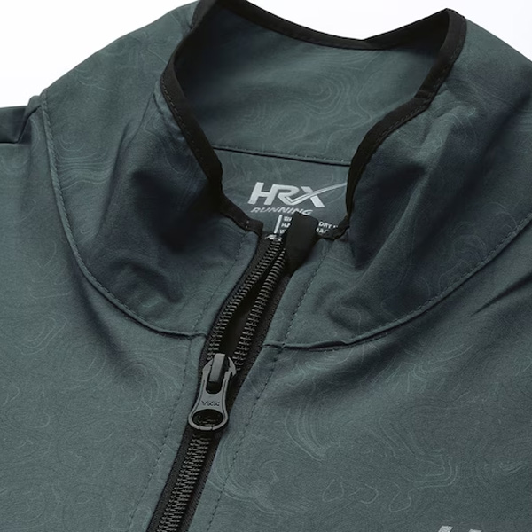 Grey abstract jacket, has a mock collar neck, 2 pockets, full zip closure and long sleeves