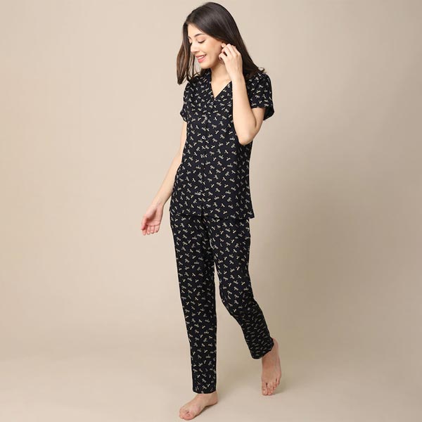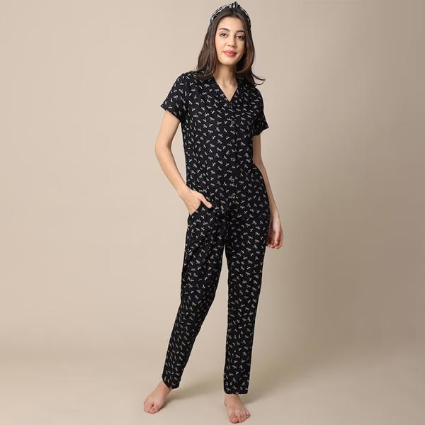 0 review(s) for "Women Black Printed Night suit"