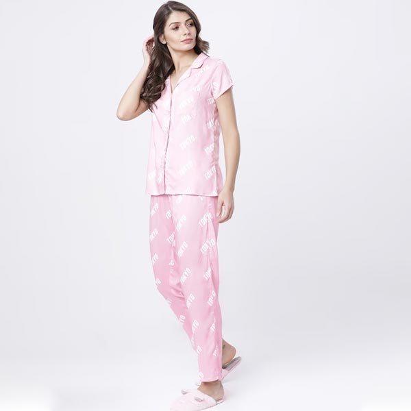 0 review(s) for "Women Pink & White Printed Night suit"